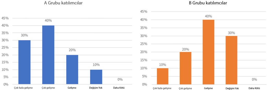 Şekil 6. Topikal ajanlar kullanılarak yapılan tedavi sonrası Grup B Hasta kendi kendini değerlendirmesi